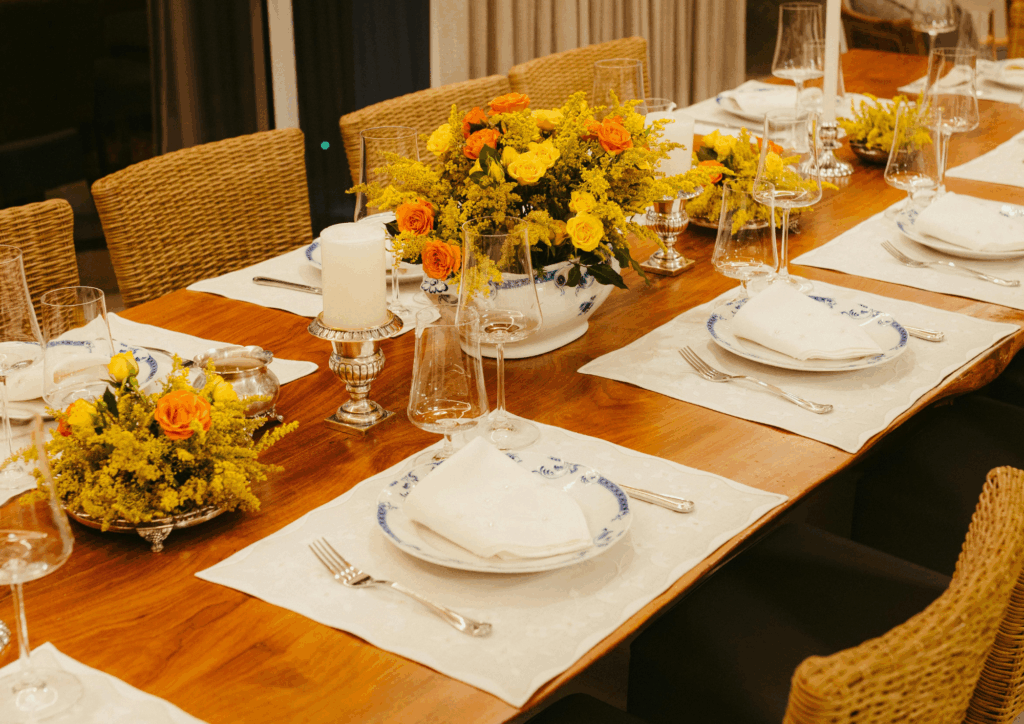 - El tipo de mesa: las mesas de madera cálida resaltan tonos tierra, mientras que el cristal combina con tonos fríos.